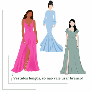👗 Para as mulheres: Vestidos longos são ideais. Modelos curtos ou midi não se encaixam na proposta do evento.