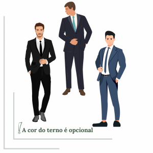 🤵 Para os homens: O traje formal é indispensável: terno e gravata. Peças como bermudas, regatas, bonés e tênis não serão permitidas.